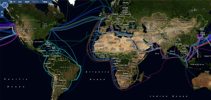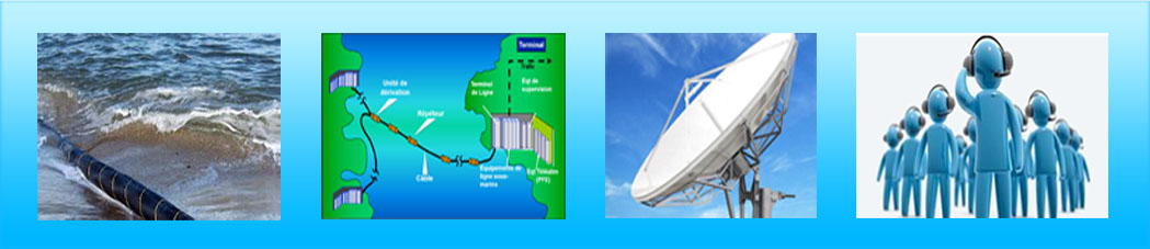 de  télécommunications (cables  terrestres  et  sous  marins,  stations  terriennes ) et  réseaux  Vsat.